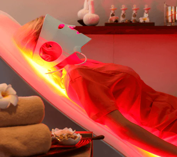 The EnergyLounger is a full-body therapy bed that delivers red and near-infrared light directly to your skin, muscles, and cells. It stimulates collagen production, boosts circulation, improves cellular repair, and helps restore physical and mental balance—all while you relax on an ergonomically designed lounger.